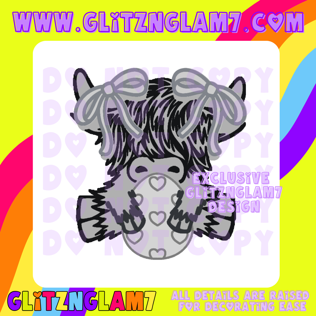| | Easter Highland Cow w/ Heart Egg & Bows Silicone Mold -GNG7 Exclusive | |