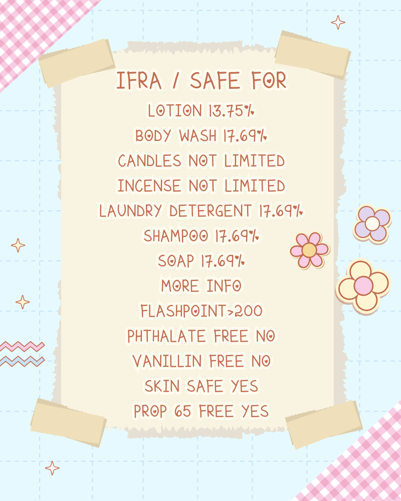 Disclaimer: Product is not safe for consumption and/or not all fragrance oils are skin safe. Do not consume oils or come in contact with fragrance oils without proper safety attire to prevent contact with any skin and/or eyes to prevent any allergic reactions or chemical burns. Keep out of reach of children and/or pets.